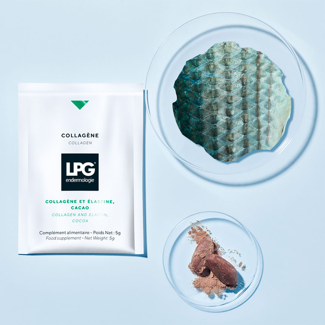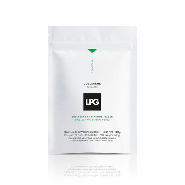 Colágeno en polvo con sabor a chocolate y avellana, reduce visiblemente arrugas y líneas de expresión, fortalece la piel tras 3 meses de uso y mejora su tono, revelando un rostro más firme y uniforme.