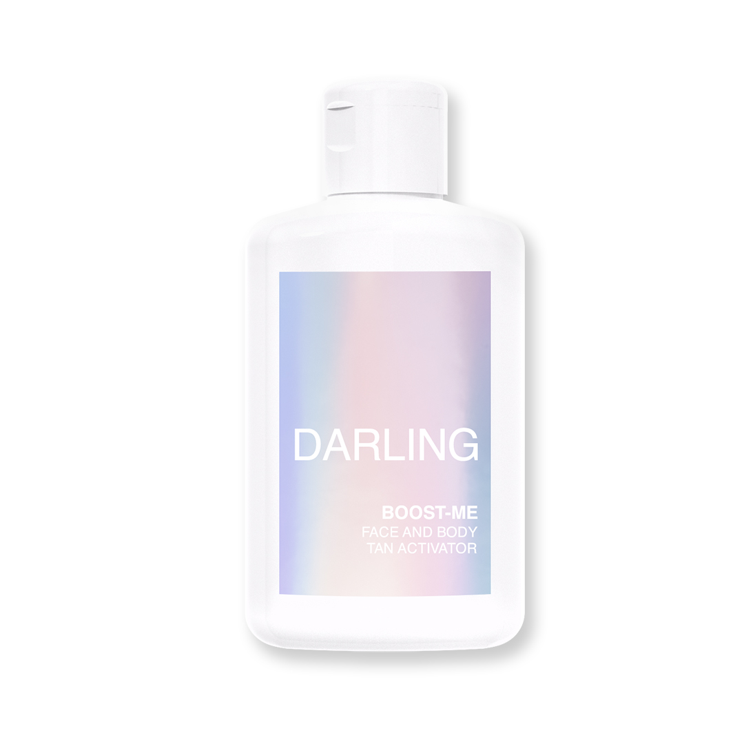 Prepara tu piel para la exposición solar con DARLING Boost-Me. Esta loción sedosa acelera la producción de melanina, potencia los antioxidantes y nutre en profundidad con manteca de karité, preparando y reforzando las defensas de la piel antes dela exposición al sol, y favoreciendo un bronceado dorado.