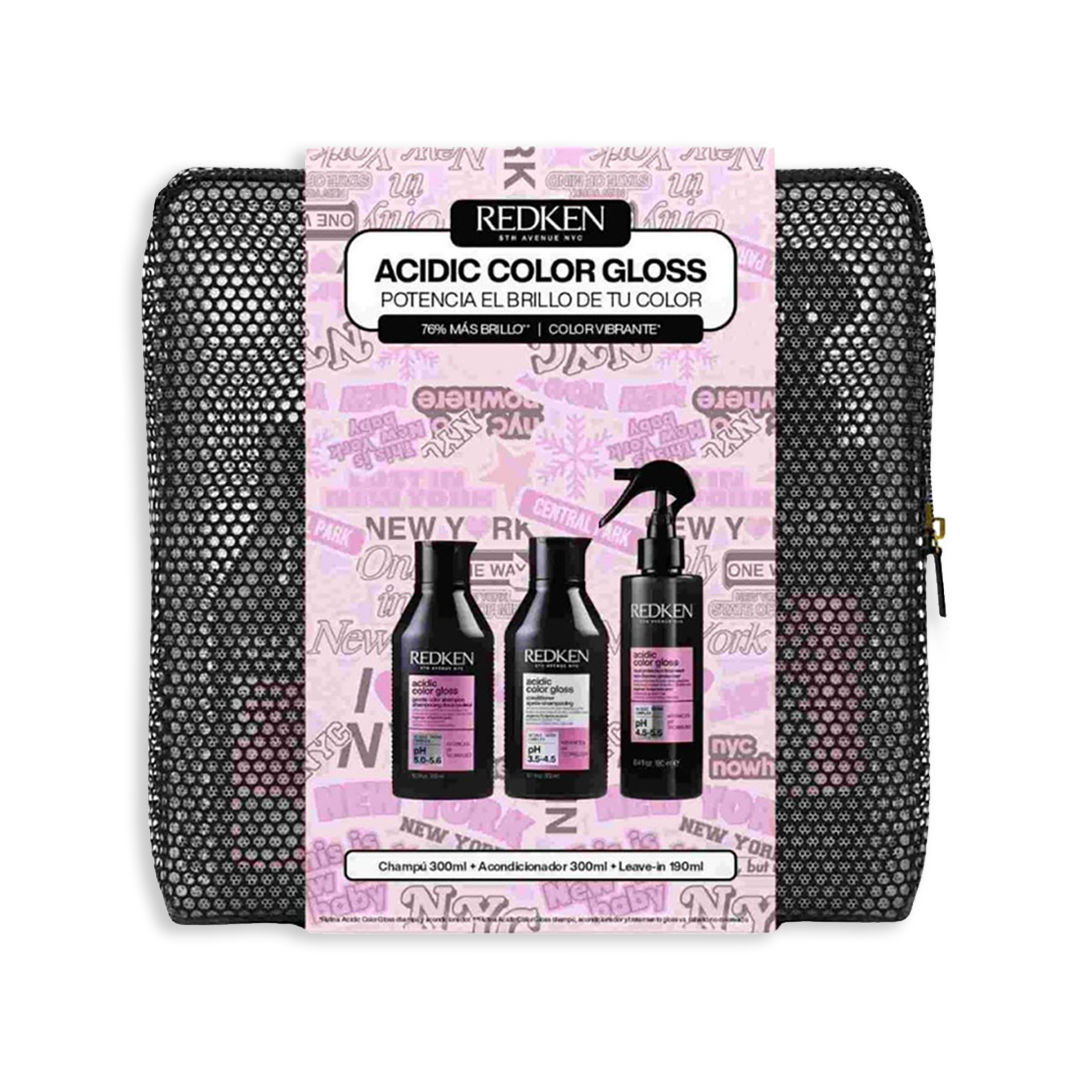 Este cofre de REDKEN contiene el champú, acondicionador y tratamiento sin aclarado de la línea Acidic Color Gloss, diseñados para prolongar el color y potenciar el brillo del cabello. Formulados con Acidic Shine Complex y Tecnología de pH Avanzada, estos productos sellan la cutícula y fijan el brillo, proporcionando un color vibrante y duradero, además de mantener el brillo de salón en casa. Utilizando la rutina completa, el cabello se mantiene 76% más brillante.